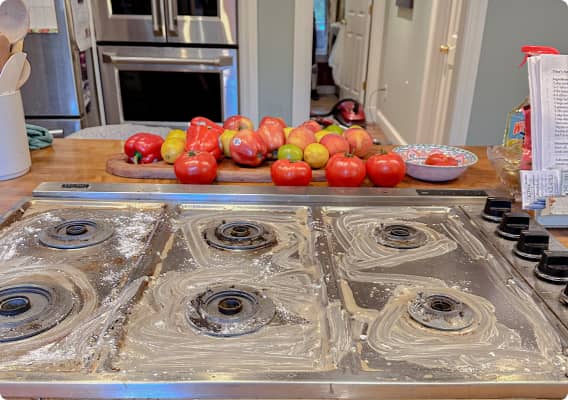 - Dust countertops, cabinets, and appliances (exteriors).